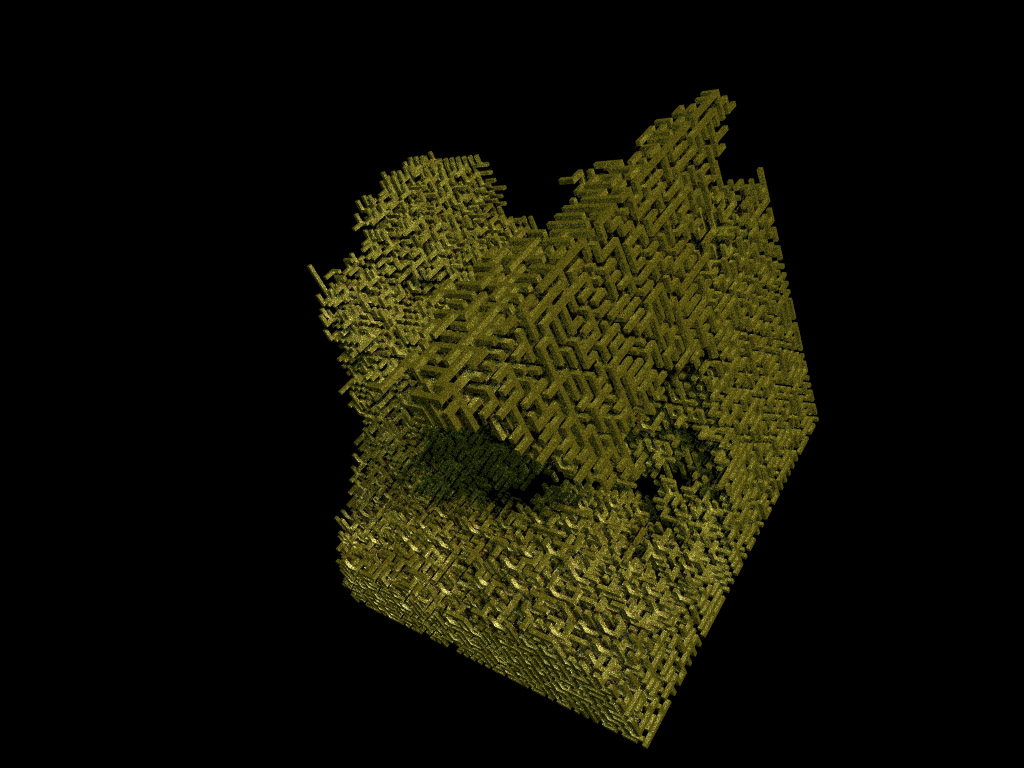 This is an attempt to render a 1000x1000x1 maze but as you can see it now more resembles textile or something. The maze is too finely grained to be recognized.